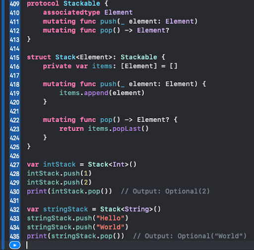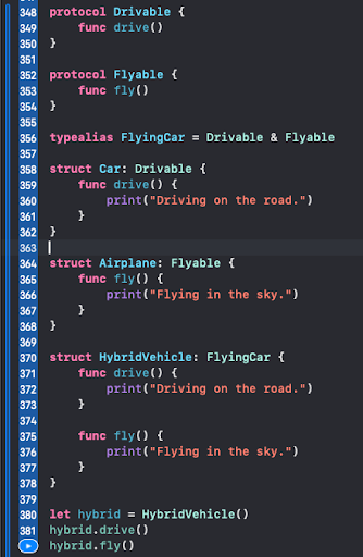 - Protocol Inheritance: Enables a protocol to inherit the requirements of another protocol.