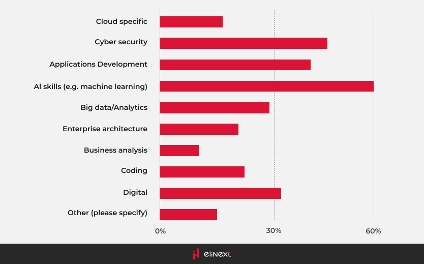 Notably, half of Australian companies are currently outsourcing IT positions internationally due to a lack of local experts. The most commonly outsourced skills are cyber security (40%)  and  AI (56%).