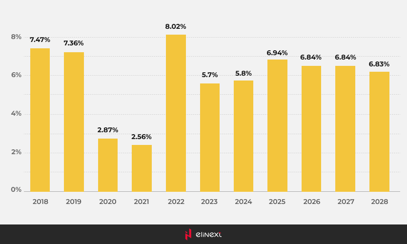 Vietnam: Growth rate of real gross domestic product (GDP) from 2019 to 2029