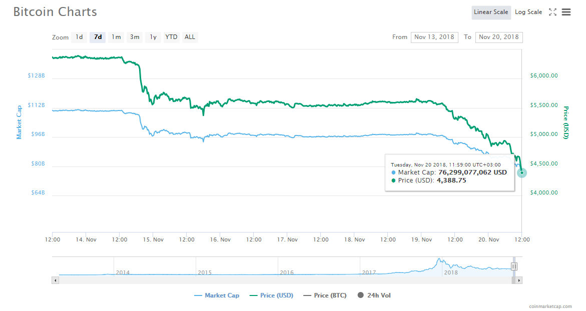 On the morning of November 25, Bitcoin was trading around $3.736, which is 13.77% lower than the previous day. In addition, the rates of most other cryptocurrencies have also reduced. In particular, Ethereum fell by 14%, and Litecoin fell by 12%.