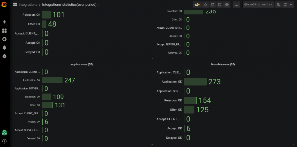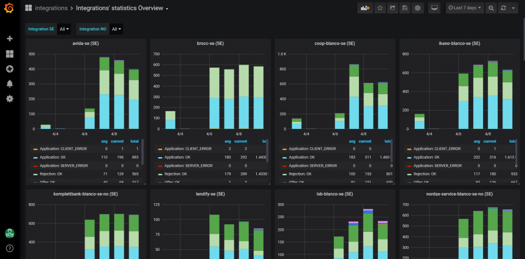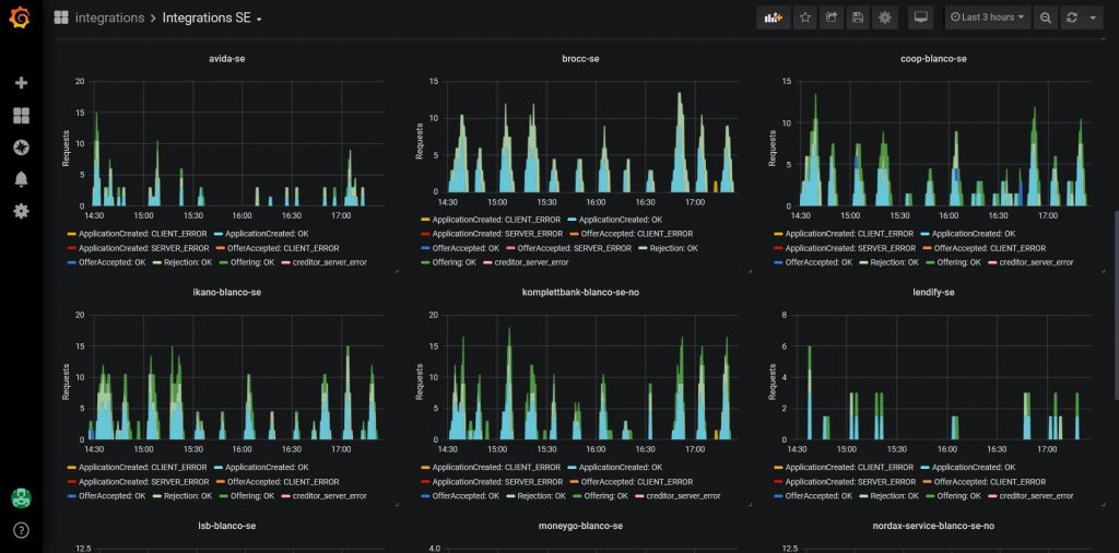 We developed a statistics board for admins, which shows figures like how many loan applications are in progress, accepted or rejected, how many requests resulted in an error, and more. We used Prometheus to source the metrics and Grafana to visualize them.