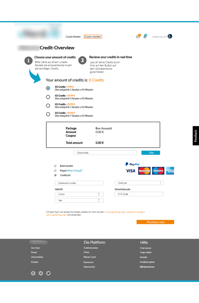 The platform is a responsive multilingual public website where a user can register an account, log in, find a coach against the range of parameters, start the learning process and get technical support for all the problems he might encounter using the platform.