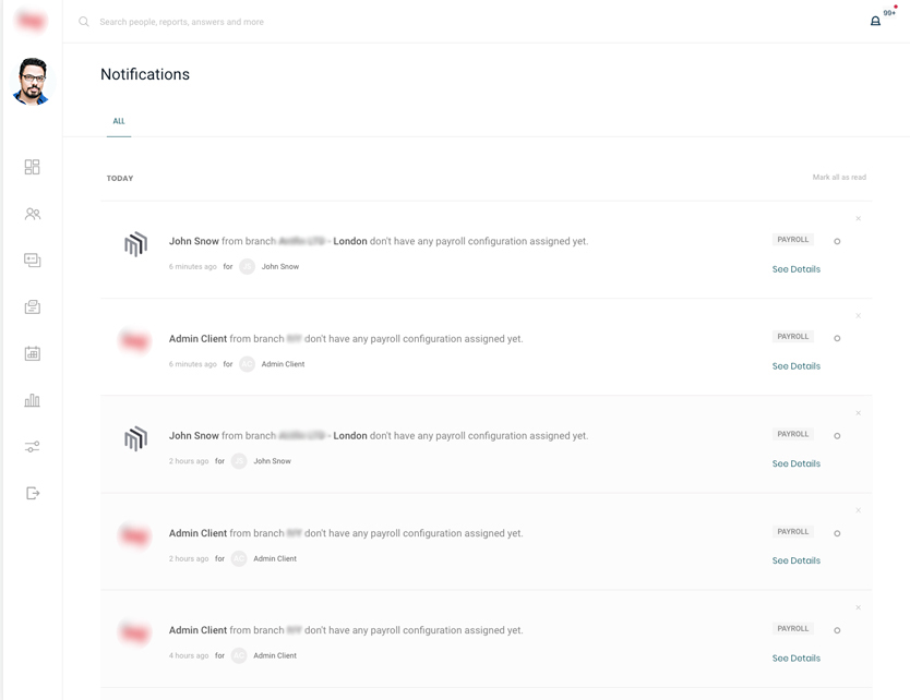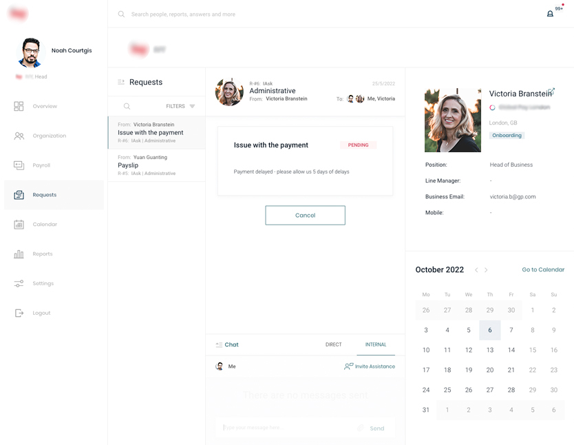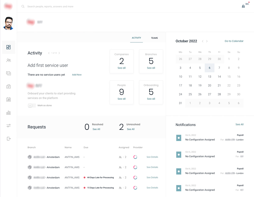 Overall, the platform has six modules: Overview, Organization, Payroll, Requests, Calendar, and Reports. And it took us some doing to sync them with five user roles, each with unique permission levels. Those included the super admin, employer, accounting service provider, referent, and employee.