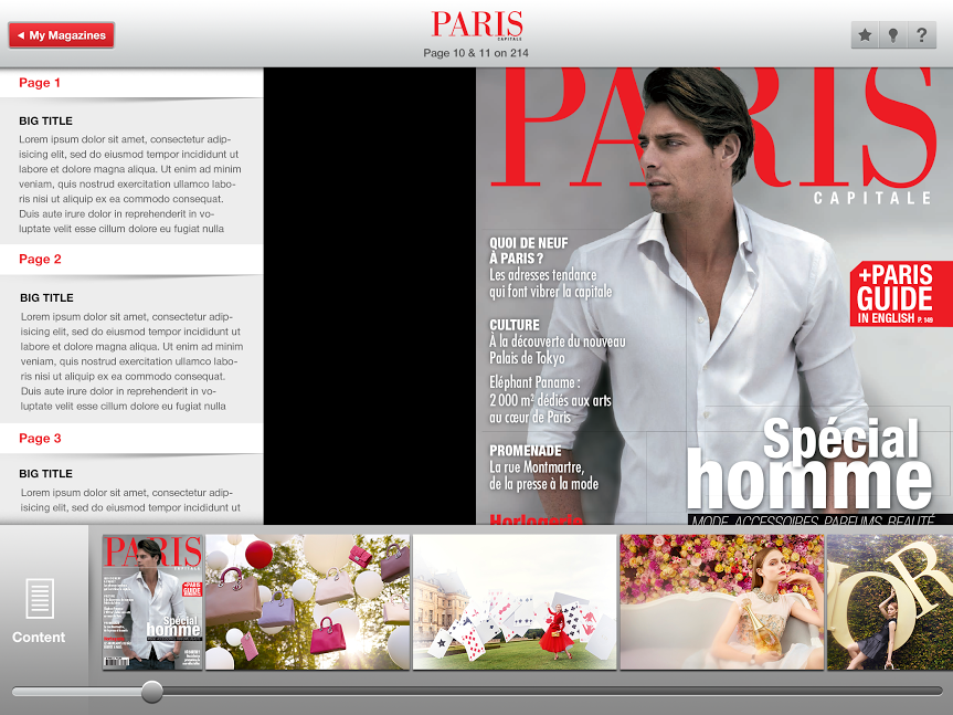 The team of developers created a truly outstanding application for the luxury magazine Paris Capitale. It works with Apple’s Newsstand, downloads magazine issues in the background, delivers a great reading experience even on the original iPad device. Users can also purchase back issues of the magazine as well as subscribe to new ones, view their library, manage issues on their devices. In general, the app offers a blend of possibilities for reading the magazine: to swipe through pages, pinch-zoom, add favorites, tweak display brightness settings, and more.