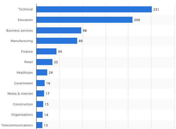 In March of 2023, Statista conducted research on the amount of companies using ChatGPT in their business function in 2023. Here is how it looked: