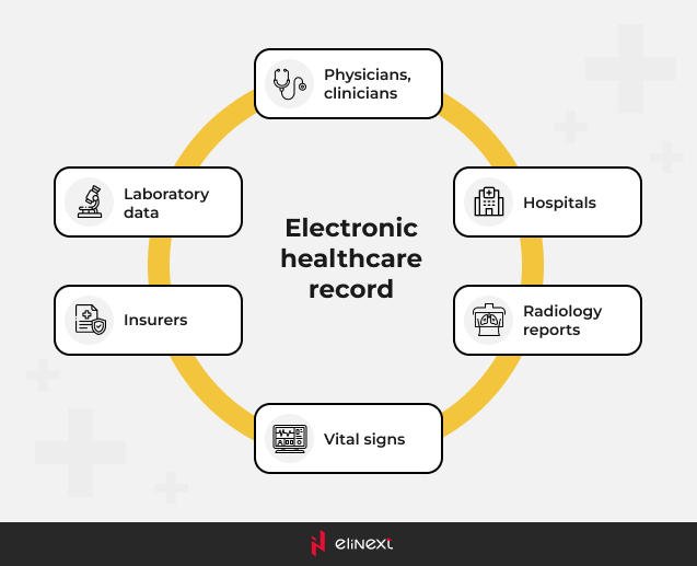 EHR systems go well beyond storing a patient’s medical history, offering a comprehensive view of the patient’s past, current, and even future health status. Remember the interoperability factor we mentioned above? What distinguishes EHRs from EMRs is the fact that they include data from ALL the authorized parties involved in the patient’s care – starting with specialists and ending with pharmacies or private clinics – and facilitate the exchange of information between them. As a matter of fact, EMRs and PHRs can be considered data sources for EHRs.