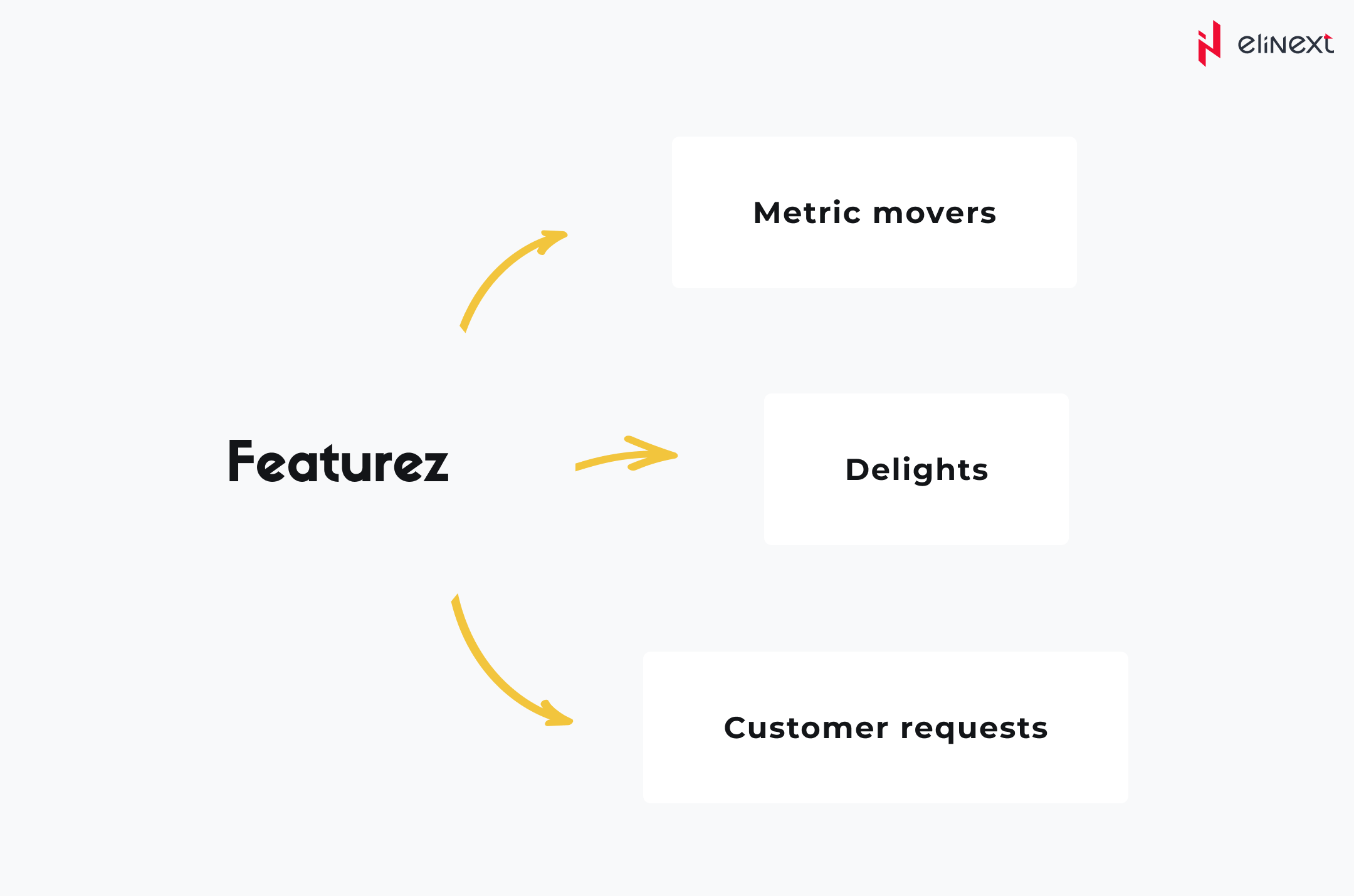Feature buckets that categorize features into metric movers, customer requests, and customer delights.